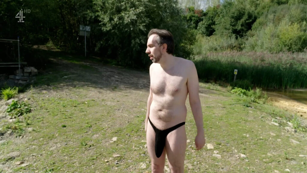 As Matt was reluctant to take part, he was keen not to be seen as ‘showing’ off. One example of this can seen in the shot of him emerging from ice-cold water (filmed on the second coldest day of the year!) in order to demonstrate the effect of ‘shrinkage’ on his member – shrinking his usual 10.5″ flaccid size to around 9″.